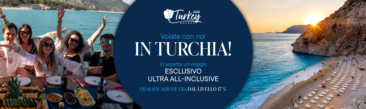Se nella vostra linea diretta avete almeno due membri che si qualificano per ESSENS Turkey 2026 e parteciperanno al viaggio, anche voi riceverete un soggiorno esclusivo in Turchia!