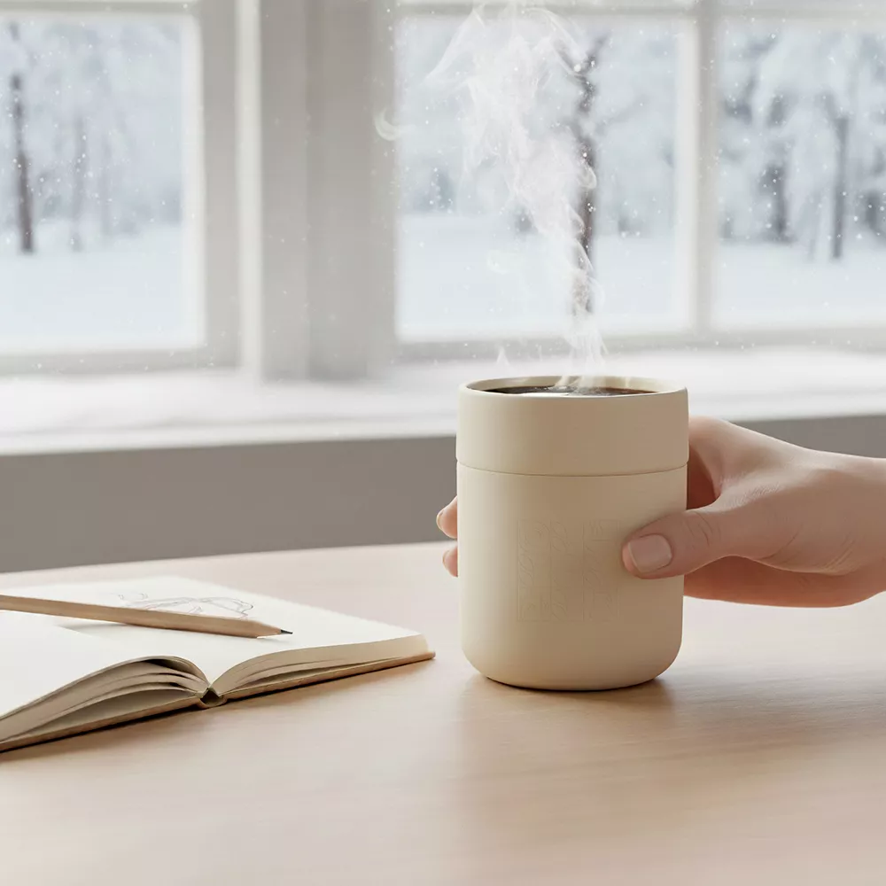 Regalo: una tazza termica brandizzata di design, creata esclusivamente per questo set. Un accessorio elegante e sostenibile per chi ama portare con sé caffè o tè durante la giornata. Non disponibile per l’acquisto singolo.