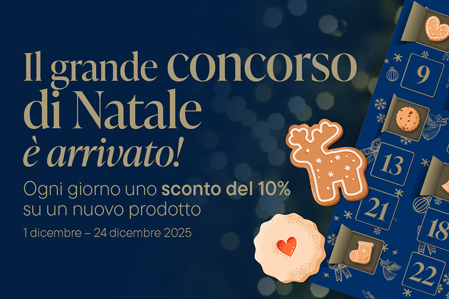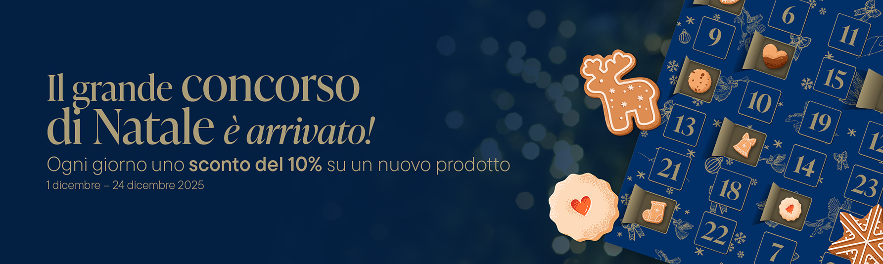 Partecipate anche quest’anno al nostro amato gioco natalizio e gareggiate per vincere splendidi premi! Ogni giorno, sul nostro e-shop, troverete un dolcetto natalizio nascosto, che vi permetterà di ottenere il 10% di sconto sul prodotto selezionato.
